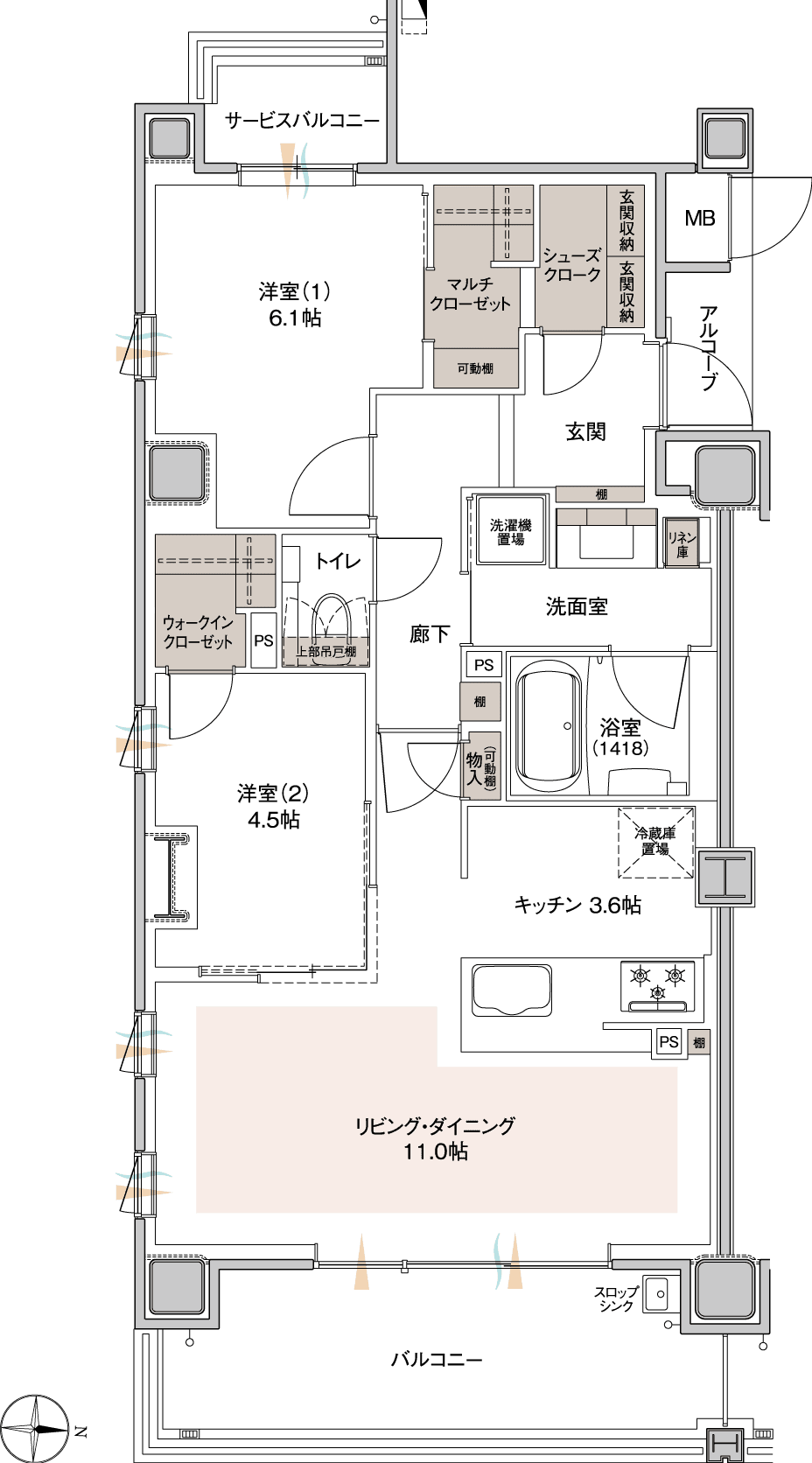 ■バルコニー面積 / 11.09㎡(約3.35坪)