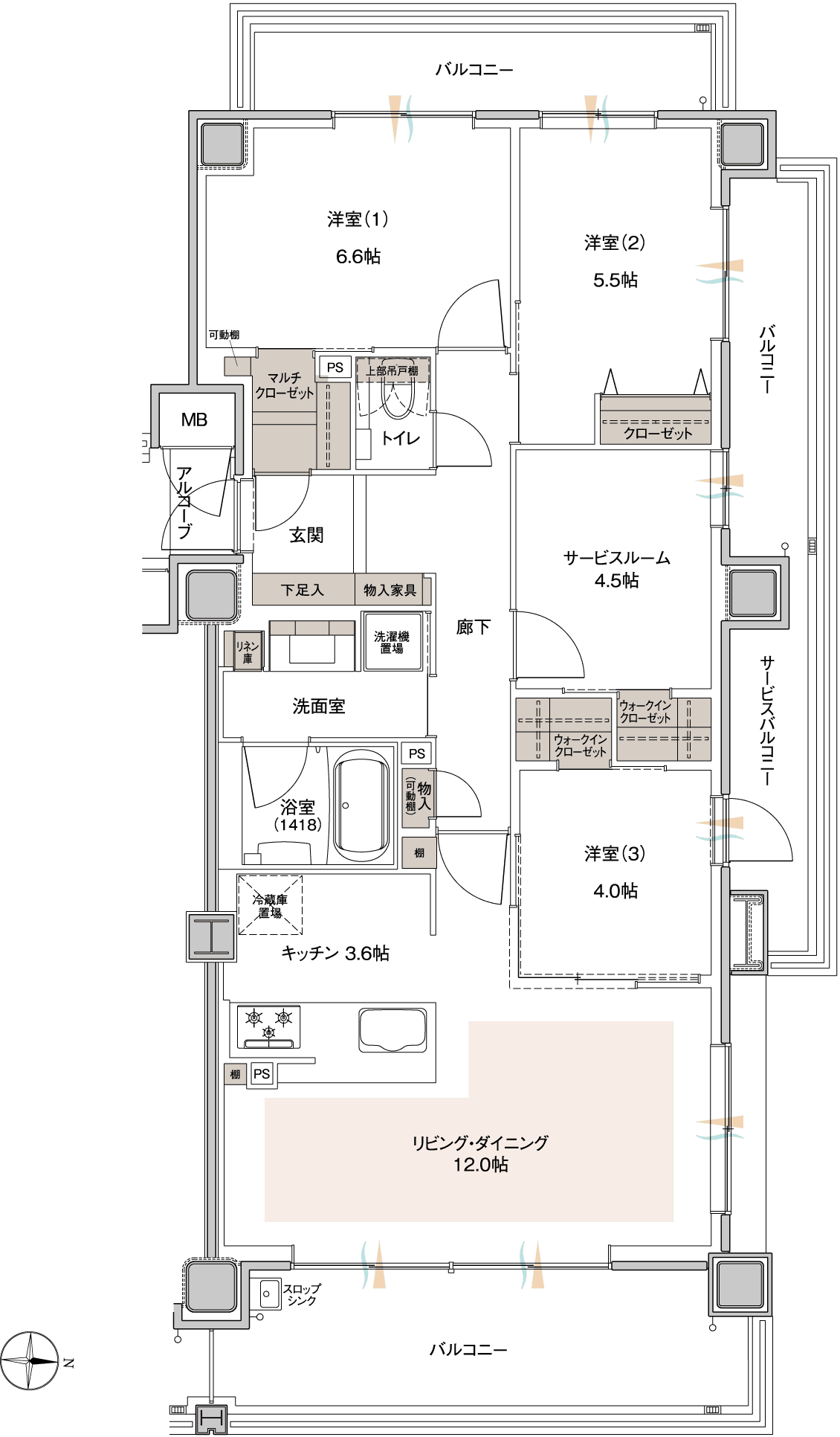 ■サービスバルコニー面積 / 5.76㎡(約1.74坪)