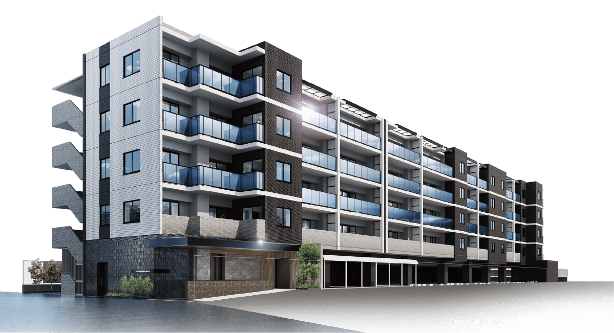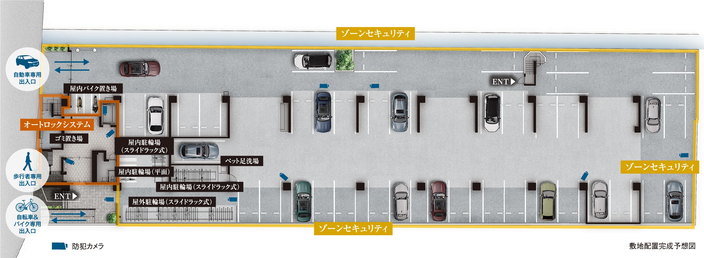 ※掲載の完成予想図は、図面を基に描き起こしたものです。また、敷地周囲の電柱、標識、ガードレール等につきましても再現しておりません。実際とは多少異なる場合があり今後施工上の理由等により変更になる場合があります。